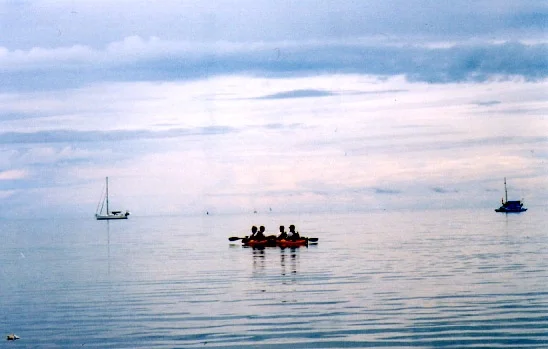 On day eight of the Eco-Challenge in Fiji, we began our ocean kayak at 9:10 AM in 14th place. The seas were calm, barely moving and almost hypnotic. The hallucinations came on strong shortly thereafter. With no bushes or trees to act as animals, my mind shifted to a different world. In the movie The Truman Show, Jim Carey paddles away from a man-made stage town to escape, and crashes into the painted screen of the sky that served as the edge of his world. With Heather in front of our tandem, I struggled with reality. Several times I slammed down my foot to hit the “brakes” (there are no brakes in a kayak), hoping to avoid crashing into my own edge-of-the-world delusion. Heather was not amused and did not share my visions- she wanted to keep moving forward. We were still racing, she reminded me, and then promised that we wouldn’t crash.