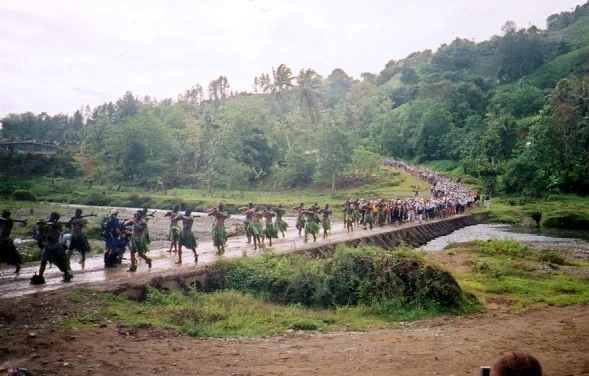 We left at 10:00 PM the next night. Eight buses were to take all 324 athletes (81 teams from throughout the world) on an eight-hour ride to the start line. After being jostled like sardines on the unkempt dirt roads, we were all ready to get the race started. At 6:00 AM we arrived in a small village in a remote area on the Eastern side of Vita Levu. Native warriors escorted us into the village and then along with the rest of the villagers, performed a dance ritual to prepare us for our journey. The faces of the villagers were awash with wonder, as most of them had never seen a non-Fijian before. There we stood, 320 + athletes in spandex, and Oakleys, and Gore-Tex, and SHOES.